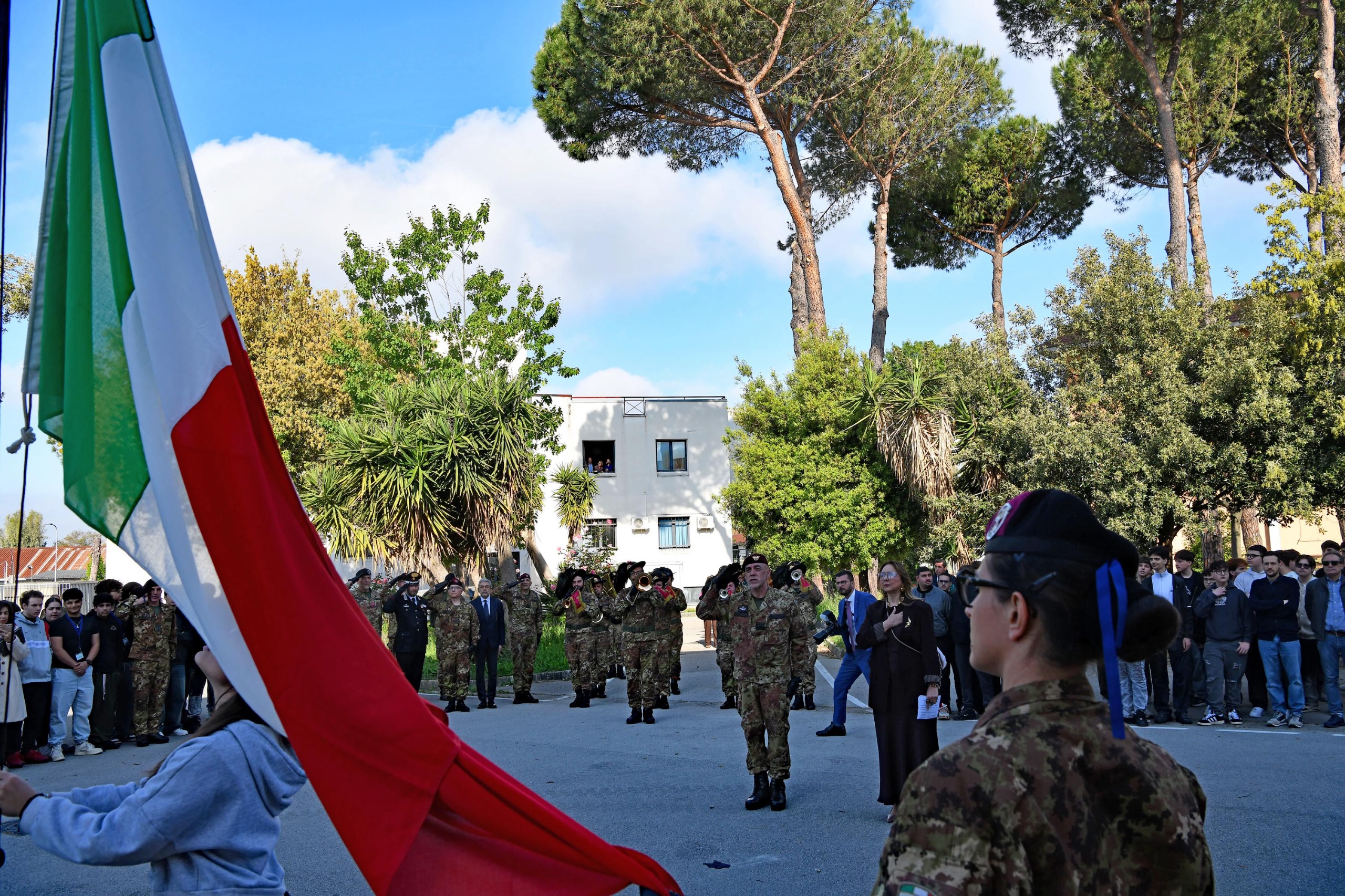 Accompagnato dal Generale di Brigata Francesco Ferrara, Comandante della Brigata bersaglieri “Garibaldi” e accolto dalla Dirigente Scolastica Antonella Serpico e dal Questore della città di Caserta dottore Andrea Grassi, il Generale Masiello ha presenziato alla cerimonia dell’Alzabandiera insieme agli studenti, condividendo con loro un momento solenne e partecipato.