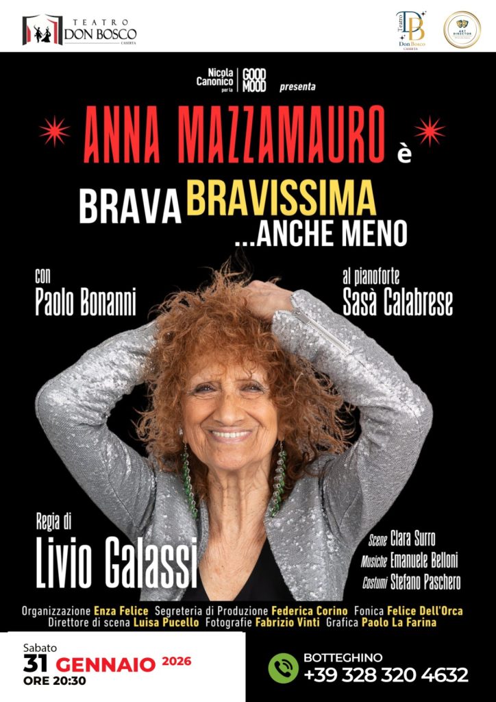 CASERTA – Spettacolo da non perdere quello in programma il prossimo sabato, 31 gennaio, presso il Don Bosco. Le luci dello storico palco casertano si accenderanno su di un gigante dello spettacolo: Anna Mazzamauro.