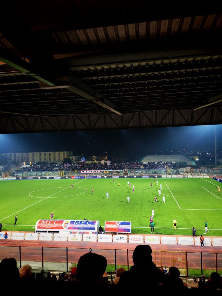 In un recupero extra-large c’è tempo prima per una revisione FVS: Coppitelli lamenta un presunto fallo su Vano, ma non trova d’accordo il direttore di gara, che conferma la decisione di campo. E poi per una doppia occasione casertana: Heinz flirta col gol con un colpo di testa sugli sviluppi di un corner; rete che arriva grazie all’inserimento vincente del bomber stagionale Bentivegna, che raccogliendo un assist da sinistra di Liotti col mancino fa 6 in campionato e soprattutto 1-1 al “Pinto”.